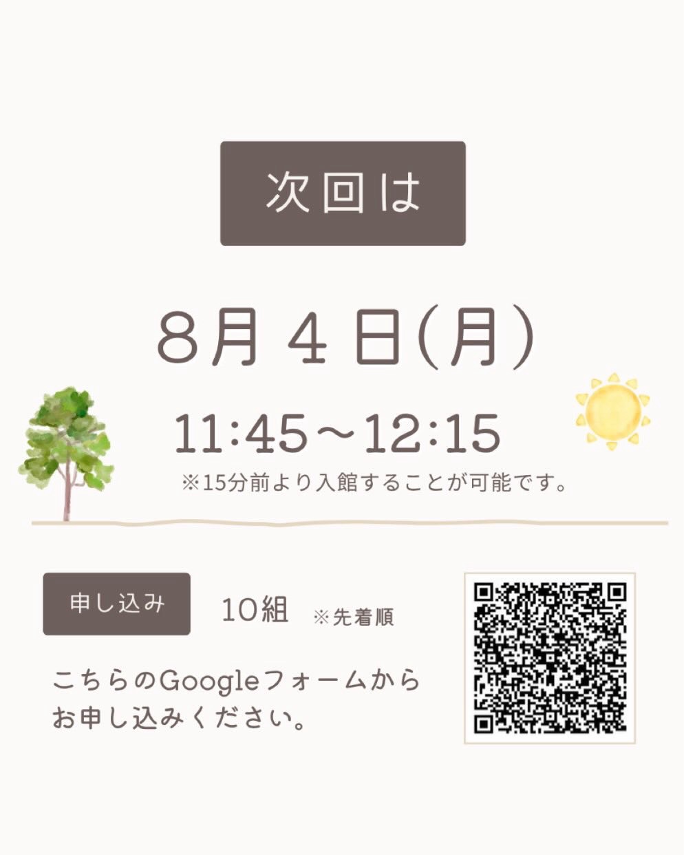 8月の開催日は4日(月)11:45~12:15🦦