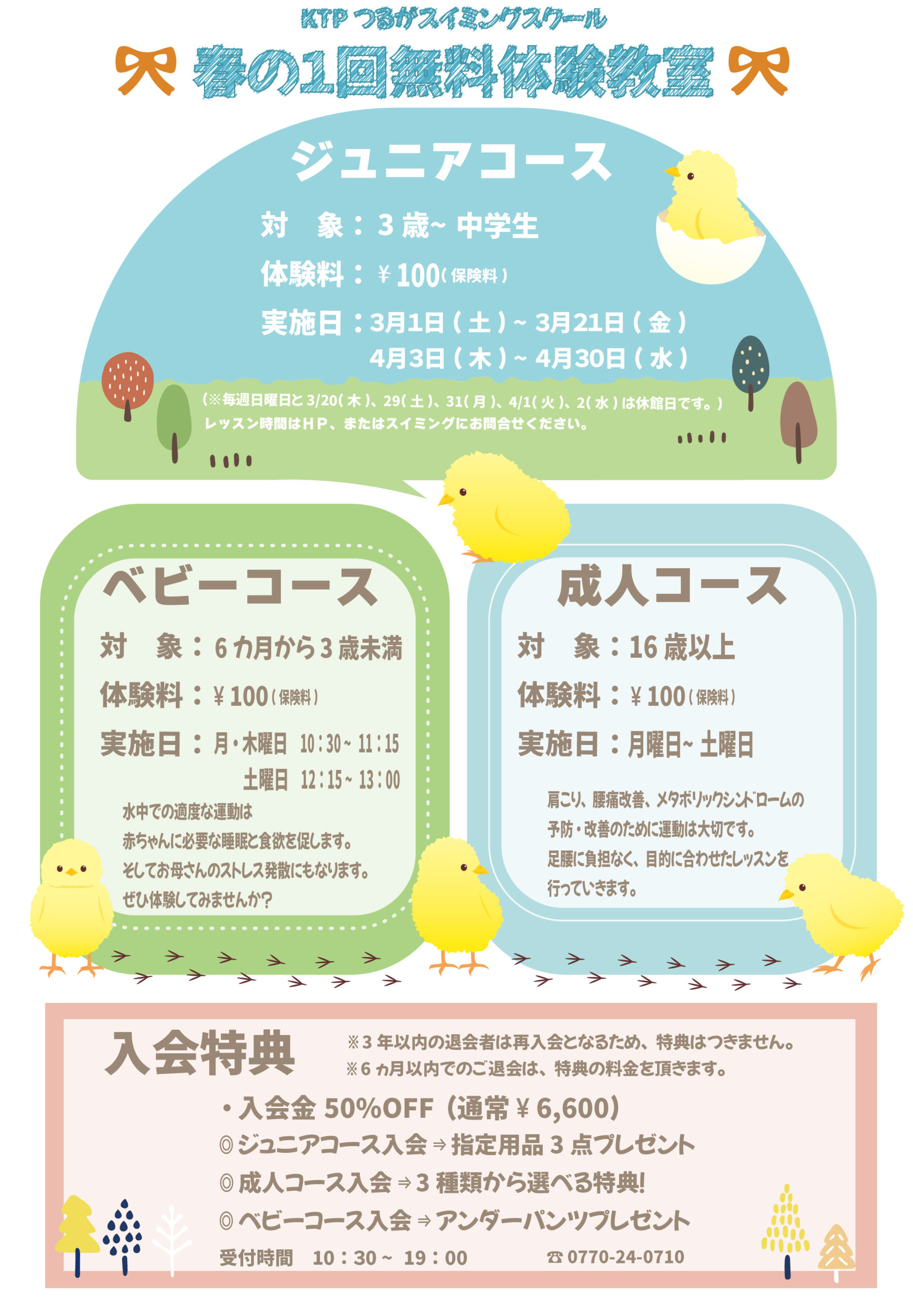 成人コース入会で体験月のレッスン無料+選べる特典用意🎁