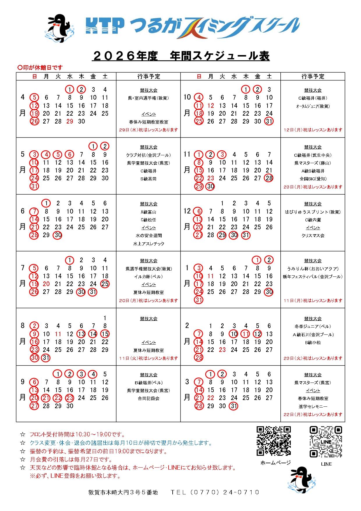 2026年度年間スケジュール